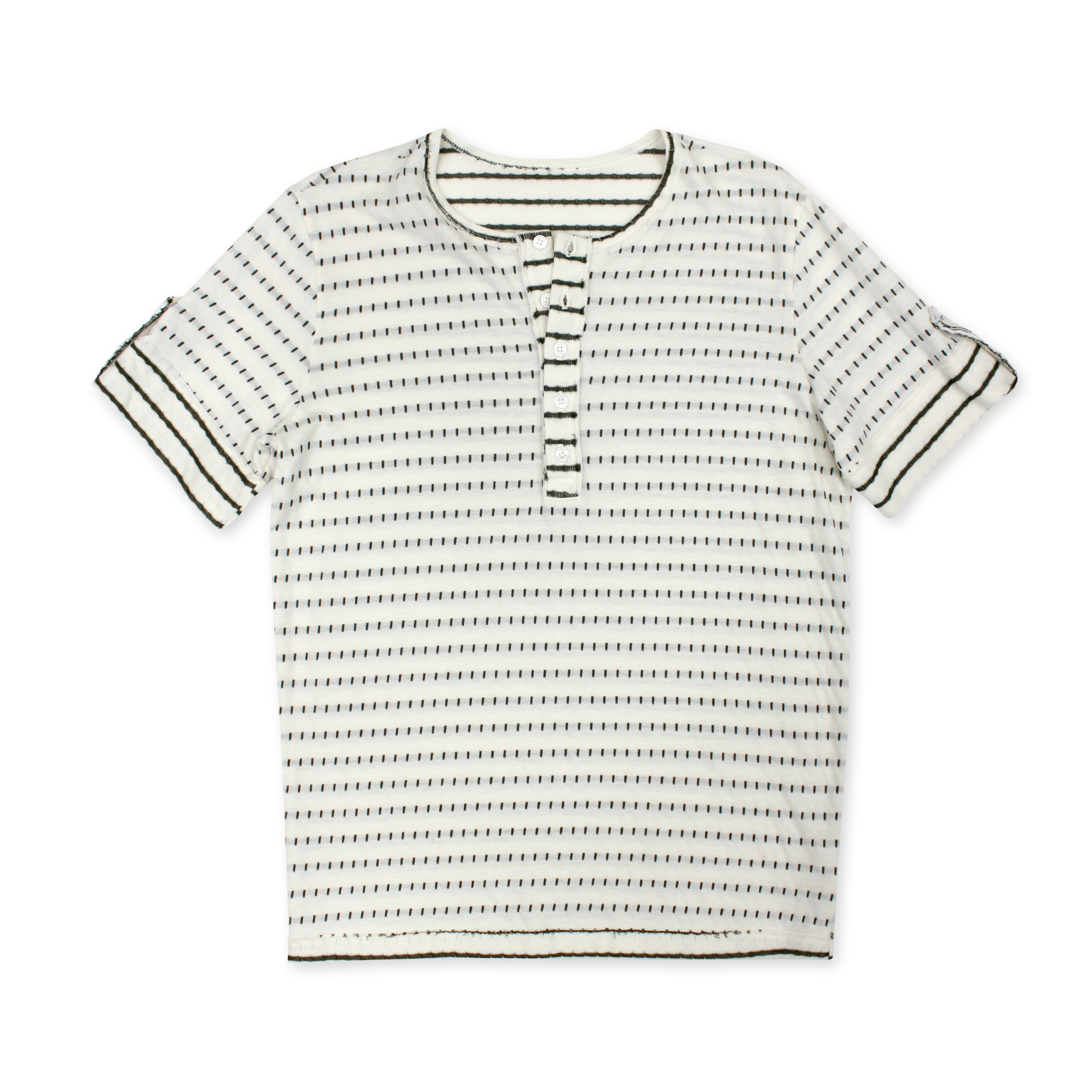 / Crew Neck Henley with Tab at Sleeves