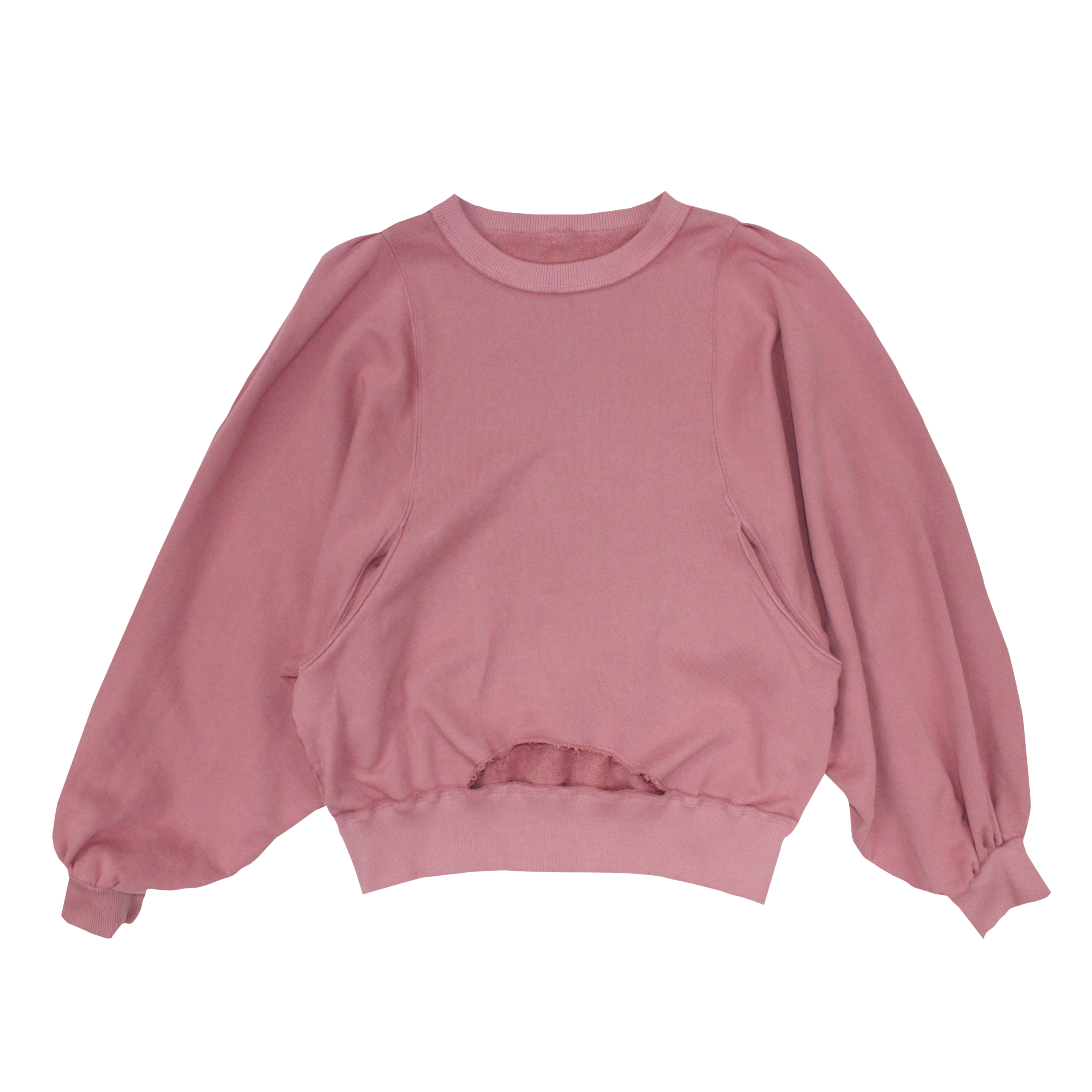 / Crew Neck Wide Sleeves Pull-Over with Raw Edge Opening